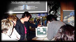 Octobre 1997 - A cup of Champagne in front of the little camera of visio conference with Jamie, Gary and Ron