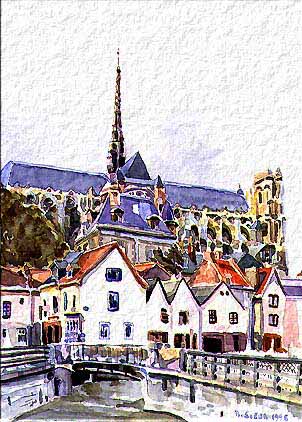 (Amiens, Picardie, France): 16 x 22 cm - aquarelle